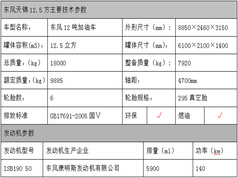 東風(fēng)天錦12噸加油車(chē)專(zhuān)用性能及備品配件