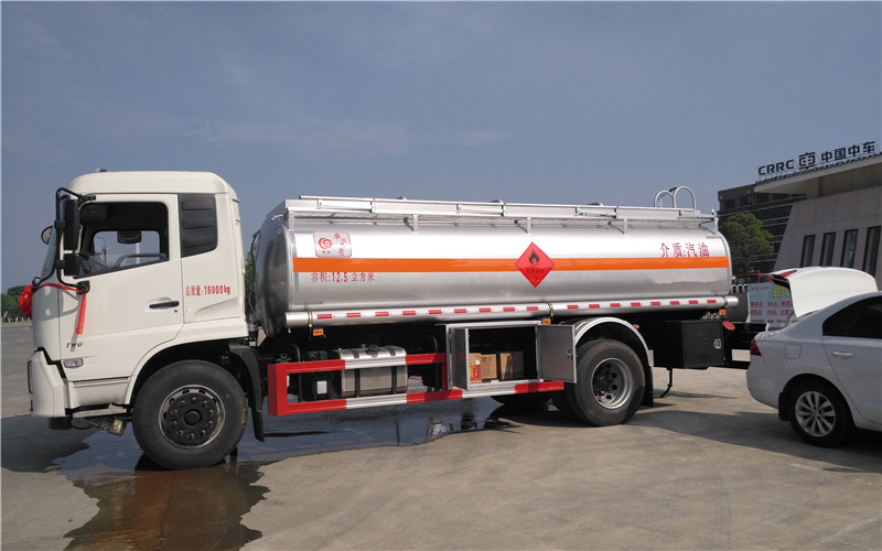 罐體采用優質Q235碳鋼板材制作,罐體容積:12.5方,實際容積約14.5方,罐體額定載:9.885噸,滿載約12噸,單倉帶泵,帶歐標全套(帶歐標罐口,帶自動智能海底閥,帶下裝油,帶油汽回收裝置,帶防溢流探桿)帶工具箱,預留加油機位置,帶兩個3KG滅火器,帶兩根與罐體等長的輸油管,帶反光貼,反光帶,帶“易燃易體”標識,帶安全告示牌,提供底盤合格證,整車合格證,罐體罐檢報告,3C標識,上戶發票,其余按出廠標配。